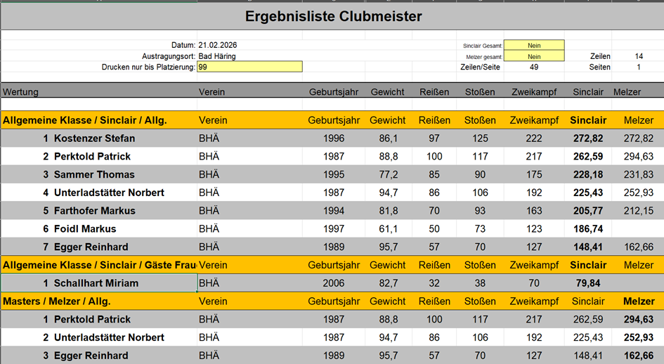 Bad Häring, 21.02.2026 – Die Turnhalle der Volksschule Bad Häring platzte aus allen Nähten: Wie gewohnt pilgerten zahlreiche Fans zum Saisonhighlight, um die Athleten des Gewichthebervereins anzufeuern.